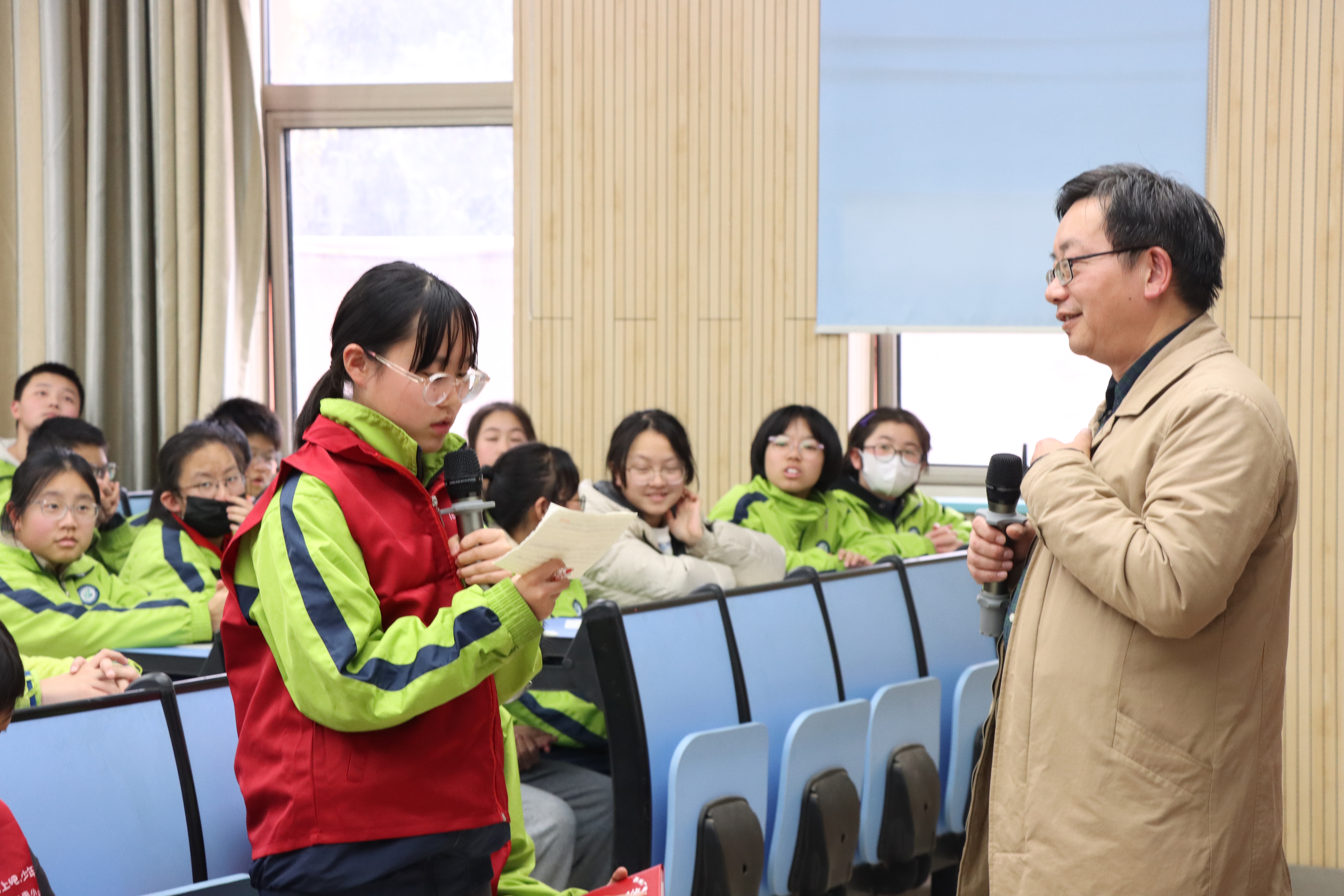 互动环节中,我校苏州广电总台小记者的提问直击核心,现场氛围热烈。