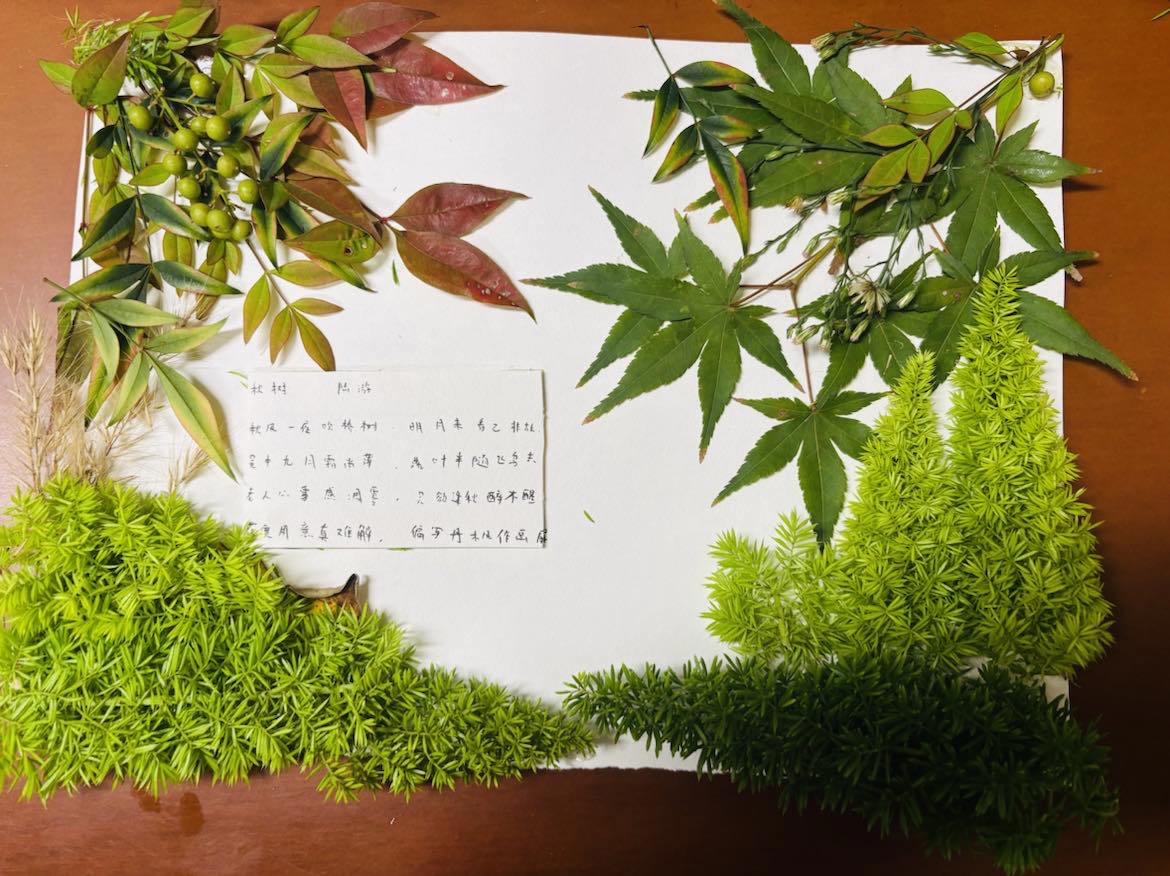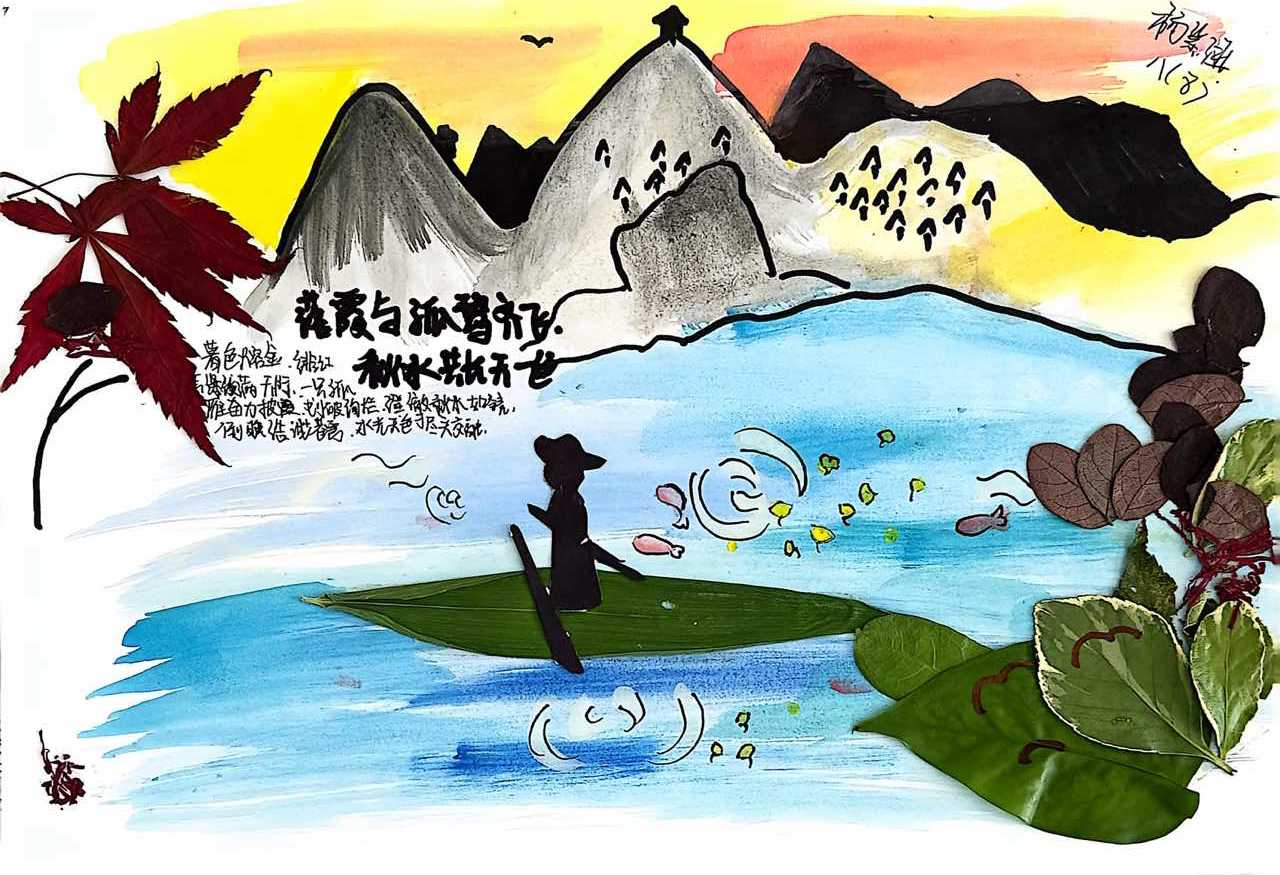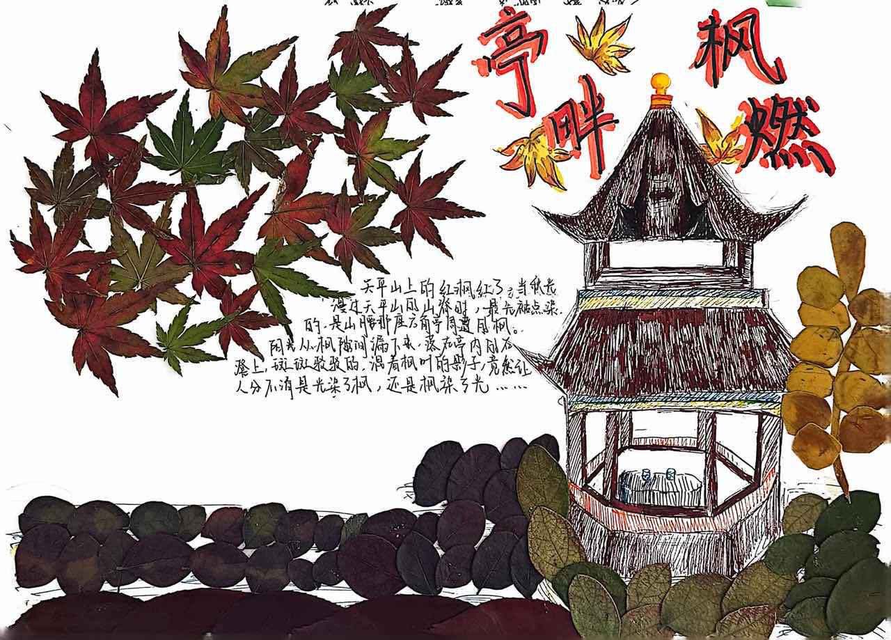 当金黄的银杏、火红的枫叶飘落,便成了学生手中的创作素材。