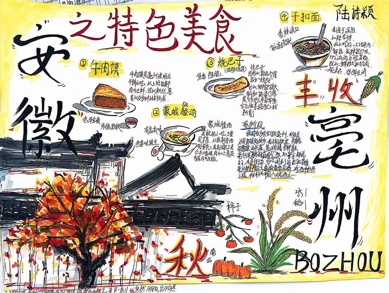 “一方水土养一方人”,学生们带着家乡的风物而来:或是外婆晒的秋茶,或是家乡酿的秋酒,或是田间收的秋粮。他们以文字讲述风物背后的故事,从 “春种秋收” 的农事智慧,到 “岁稔年丰” 的家国情怀,让家乡的味道融入语文,让文化的根脉深植心间。