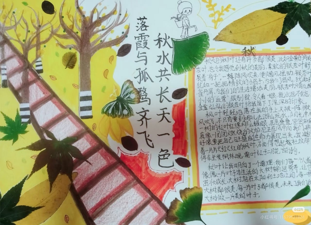 他们拾起林间落叶,以巧思剪裁、用匠心拼贴,将秋的意境凝于纸上:或勾勒出 “霜叶红于二月花” 的绚烂,或拼绘出 “空山新雨后” 的清幽,每一幅作品都是对秋景的诗意解读,亦是对文字意象的生动转化,让静态的落叶化作动态的语文表达。
